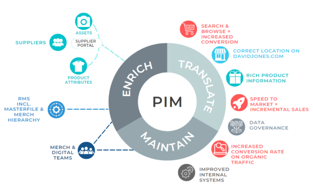 PIM stands for Product Information Management. It is a cloud-based business application that is a single place to collect, maintain, enrich and translate product information. The PIM solution manages most information and data that is required to position, market and sell products through the David Jones omni-channels. It is our single source of truth for product data and information.